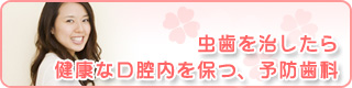 お口の健康を保つために、予防ケアをはじめてみませんか? 当院では、虫歯になる前、または治療完了後に、正しい歯磨き方法のアドバイスや、歯磨きでは取れない汚れをクリーニングする予防歯科をご提供しています。患者さんのお口の状態に合わせて、ご自宅で実践できるケア方法などもご説明し、ご自身で歯の健康を保てるようサポートします。また、定期検診に受診することで、虫歯の早期発見・治療が可能です。ご相談から承りますので、ぜひ一度ご来院ください。